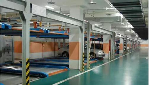該設(shè)備的頂層載車板可上下升降;地面層載車板做橫移,地面層留有一個空位,可以通過橫移載車板變換空位,使空位正上方的載車板下降到地面層。地面層載車板上的汽車可直接出車,完成存取過程。